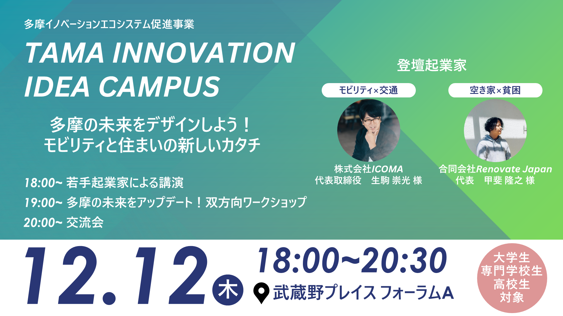【学生イベント】「TAMA INNOVATION IDEA CAMPUS ~多摩の未来をデザインしよう!モビリティと住まいの新しいカタチ~」 開催報告