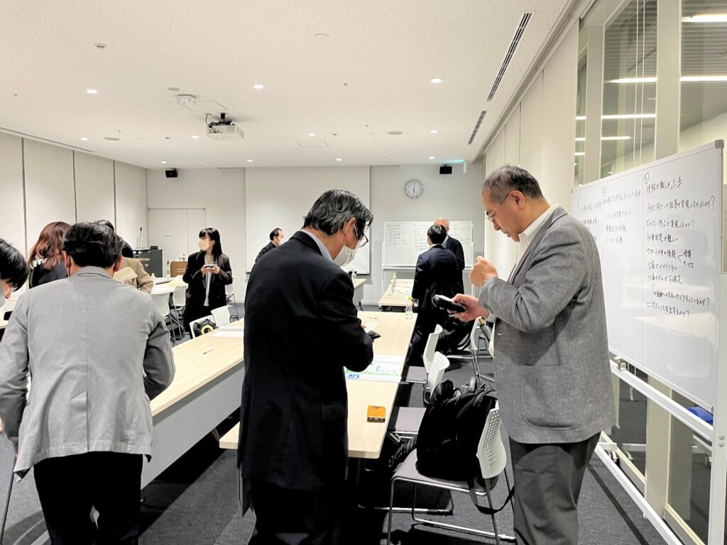 自由参加の交流会では、名刺交換やグループワークの感想、ピッチ資料や提案資料の作成に向けたディスカッションなど活発な交流が行われました。
