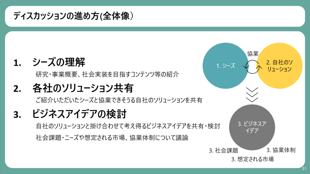今回は産学連携をテーマにしたはじめてのワークショップとなりました。