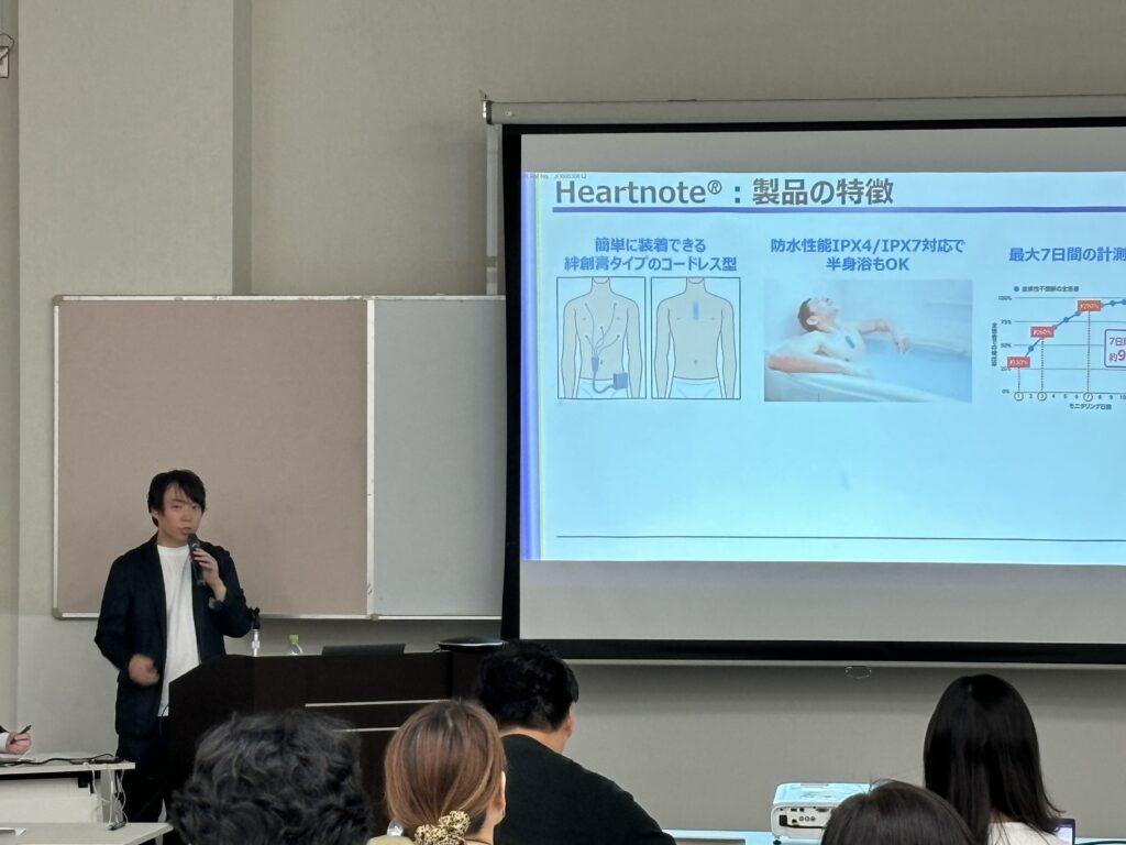 今回、7日間連続で記録可能な世界最薄・最軽量クラスのホルター心電計”Heartnote®”の活用に関する共創パートナーを募集します。”Heartnote®”は、コードレス型のため装着抵抗が少なく、防水設計のためシャワーや半身浴が可能です。現在、循環器疾患と睡眠障害向けに健診施設での自由診療サービスを開始しています。また、過去には自治体連携事業として大分県内の自治体と連携し、心房細動の早期検知の実証事業を展開しました。