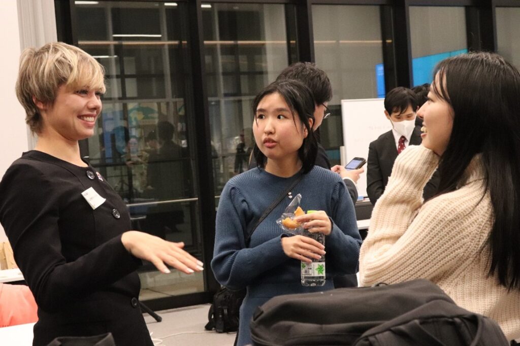 登壇されたお二人を囲み、交流会を実施しました。参加者からは「様々な学生と交流することもでき、非常に楽しかった」と感想もいただき、普段交流のない学生同士のつながりができる貴重な機会となりました。
