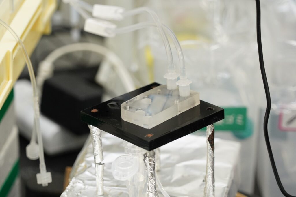 当社の強みは二つ。一つは、こういったデバイスの処理量を何十倍にもする技術を開発したこと。もう一つは、通常血液試料をデバイスに流すと目詰まりが生じるのですが、それを防ぐ技術を開発したことです。日本の学会からも表彰していただきました。