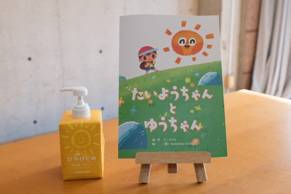 伊藤:子どもたちが日焼け止め対策を習慣化するためには、教育とセットで行うことが重要です。そのために絵本を制作し、保育所・幼稚園・認定こども園といった保育施設で活用することを考えました。ストーリーは、「たいようちゃん」と「園児のゆうちゃん」の2人の掛け合いを通して、帽子・水分補給・日焼け止めの大切さを学ぶことができるといった内容です。紙芝居のように全員参加型で楽しめます。私が実際に保育施設で読み聞かせを行い、絵本を配ることを通じた啓発活動をしています。日焼け止めを導入していただいた保育所の先生さんからは「外遊び全般の知識を得ることができた」、「普段はそんなに手を挙げない子が手を挙げていた」等、いろいろな声をいただいて、多少なりとも啓発につながっているのではないかと感じています。