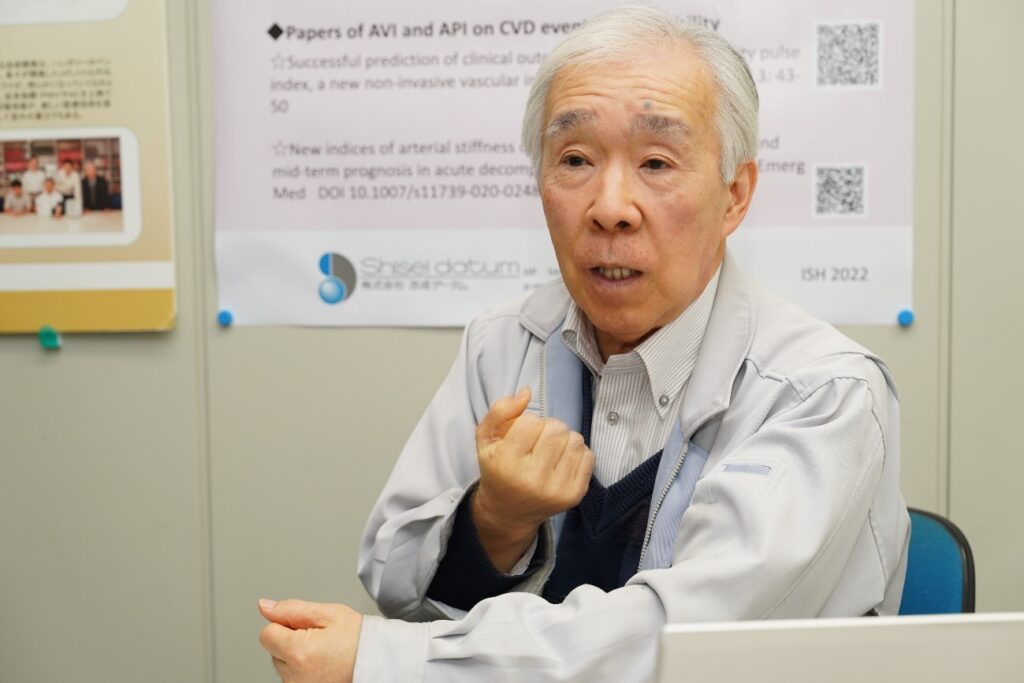 齋藤:創業当時から血圧計の研究開発を続けてきた歴史があるので、早くから血管の硬さには注目していました。心筋梗塞や脳梗塞の原因となる動脈硬化のリスクを抑えるためには血管の硬さを把握することが大事だということは、1999年のWHO/ISH(世界保健機関/国際高血圧学会)のガイドラインでも指摘されていたのです。