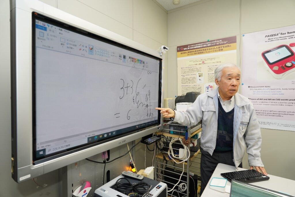 弊社の以前の主力製品は電子黒板でした。起業前はパイオニア株式会社で大型テレビを設計していたので、当時の経験を生かし電子黒板には光学式タッチパネルを搭載しています。電子黒板は、複数の人が画面を共有して理解を深めることができるので、最近は学校やビジネスの現場でも使われています。