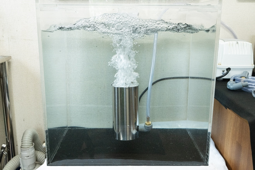 惣川修:約15年かな。もともと火山岩は土壌改善に効果があると分かっていたので、最初は腐植や自然石を使っていたのですが、途中で日本の法律が変わり飲水の処理をする機械の中に自然石や土を入れてはいけなくなった。そこで活性炭やセラミックを試したのだけど、どうも効果が限定的だった。なんとかこの状況を打破しなければと試行錯誤を繰り返すなかで、たどりついたのが、シリカと角閃石を独自の方法で焼結したセラミックと特殊な水流を生み出すプレート弁の組み合わせだったのです。